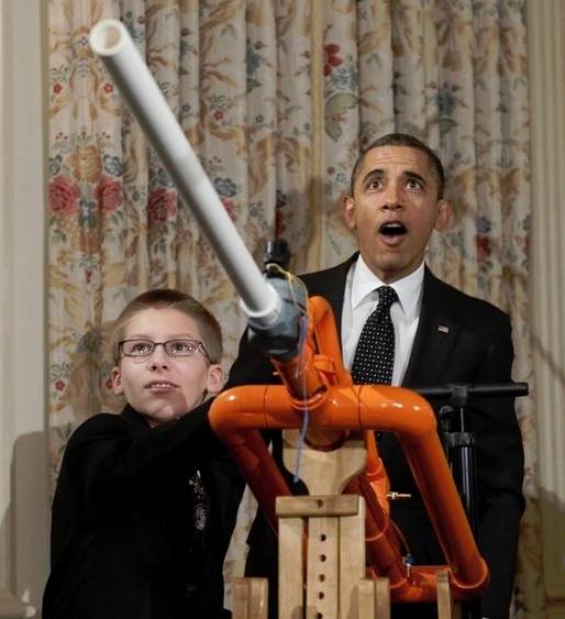 Joe Hudy并不是第一次上新闻,2012年2月初,他参加了白宫科学展,并受到了美国总统奥巴马的接见。他自己打造的高速棉花糖发射器技惊四座,奥巴马被他深深打动,亲自和他“开火”,然后“惊讶地看着射出去的棉花糖,飞过展场落在红厅入口附近的墙上”。