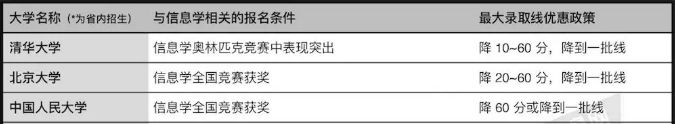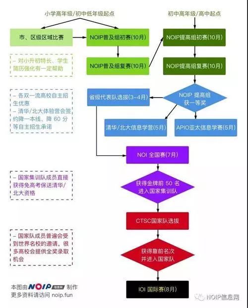 d、通过省队选拔,进阶NOI全国赛,在 NOI 系列赛事中获得较为优异成绩的学生同样也有机会参加清华北大组织的体验营,获取签约降线录取的机会。
