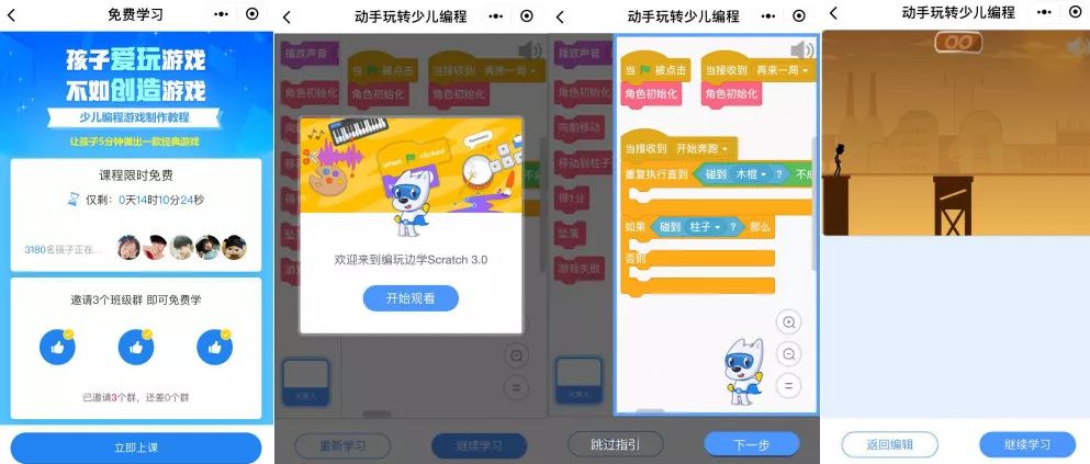 我们正在研发的小程序——“动手玩转少儿编程”,将小程序分享到三个群就可以体验编程,整个流程不超过五分钟,完成编程后就可以直接玩“自己创作”的游戏作品。