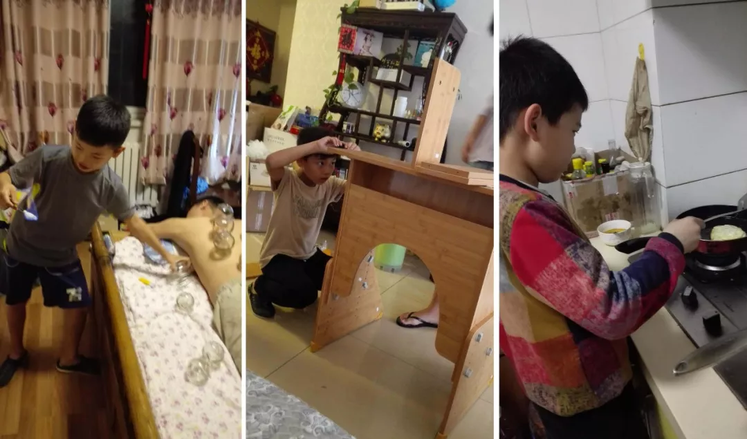 10岁的王家锐喜欢做饭,喜欢安装家里的家具,甚至于,他还会拔罐。